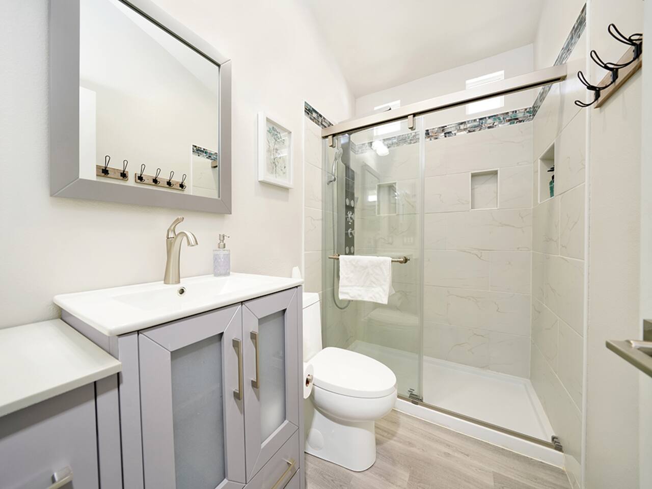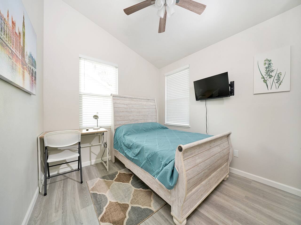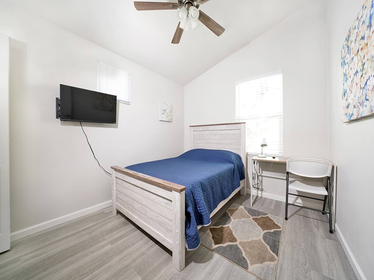 ->1800 sq ft ->2-car garage (must park in garage 12a-6a per HOA) ->Memory foam mattress in each bedroom ->Gas fireplace ->Fully equipped kitchen ->TV in every bedroom ->Modern upgrades (smart switches, dimmable lights, remodeled showers) +The home is not childproofed.